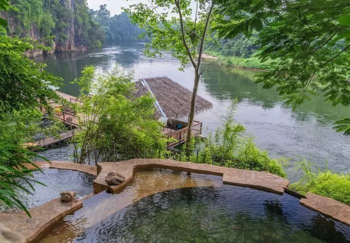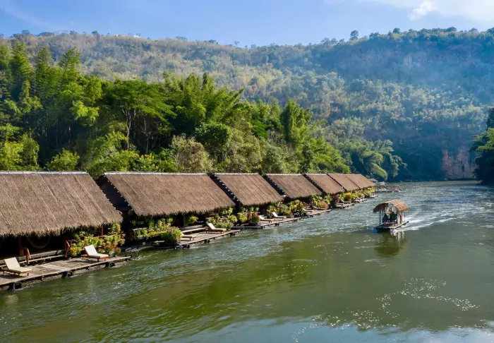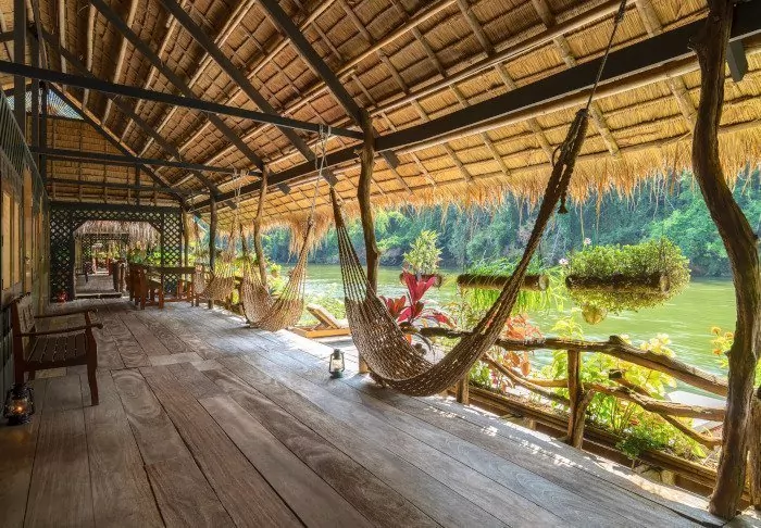 The unique River Kwai Jungle Rafts is a floating hotel – a hotel built on a raft – that will transform your perception of luxury. The flotel is securely anchored in the Kwai River with a walkway to the riverbank.