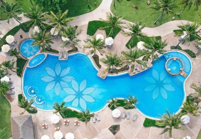 The resort has more than 400 rooms, but it enjoys a beautiful setting and is divided into several sections, which are located in a large tropical garden, so it feels both cosy and very charming. As there are also 6 pools, it’s always easy to find a quiet and shady corner, if that’s what you want.