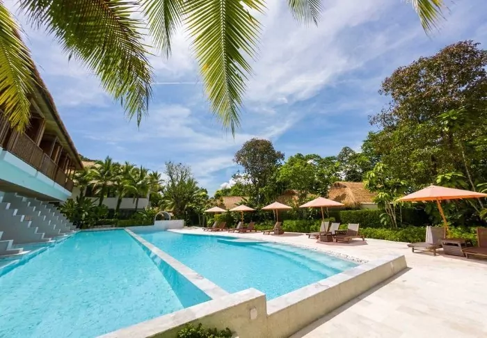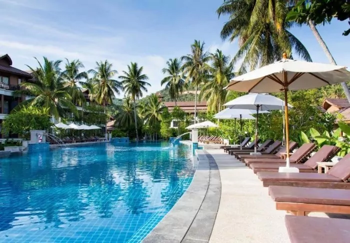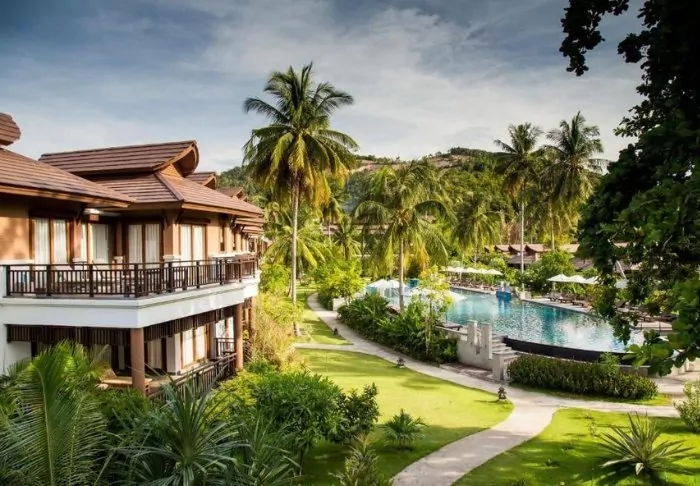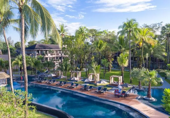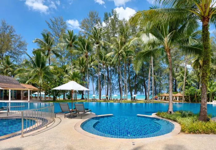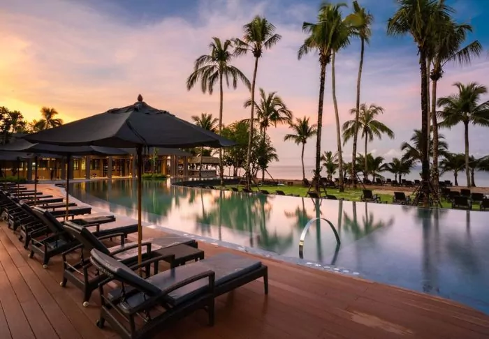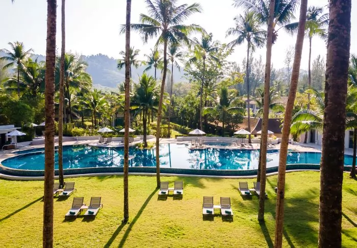 Situated between swaying coconut palms right on Bangsakin beach overlooking the Andaman Sea, with lush mountains as its backdrop, is Outrigger Khao Lak Beach Resort.
