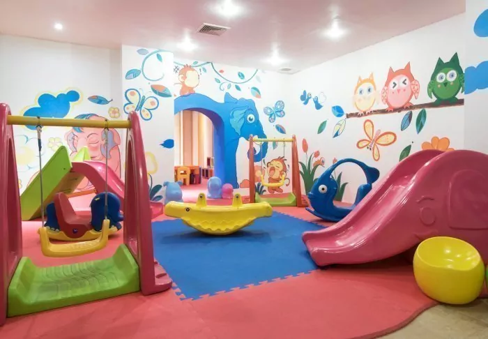 Inside, there are also activities for children and adults alike. For little ones, there is the kids’ club’s play area with a ball pool and slide, while adults can have fun in the hotel gym. Need a spot of pampering? You can relax at the hotel’s day spa, where massages and various treatments can be booked.