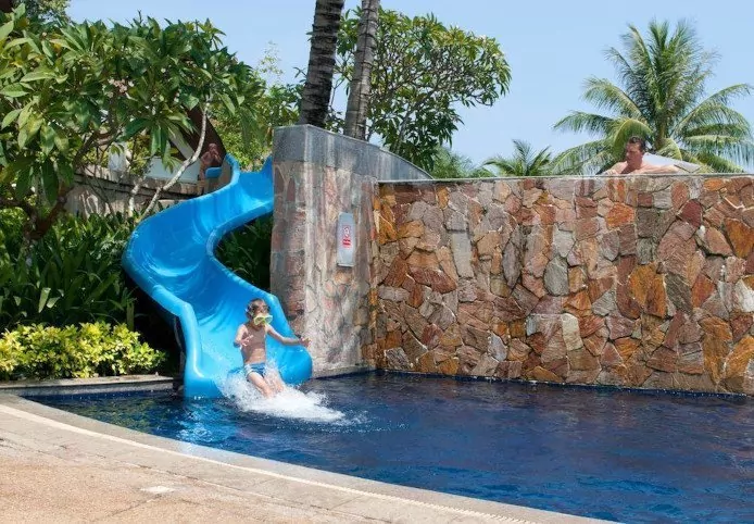 The resort consists of 3 hotel wings, each with cosy pool areas. There is also a fantastic infinity pool, where time almost stands still when you rest your head on the edge of the pool to the view of swaying palm trees and the beautiful emerald-green sea. The resort also has a pool area for children offering plenty of opportunity to splash about in the water and have a little go on the water slide.
