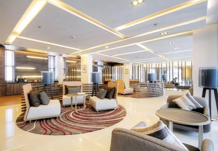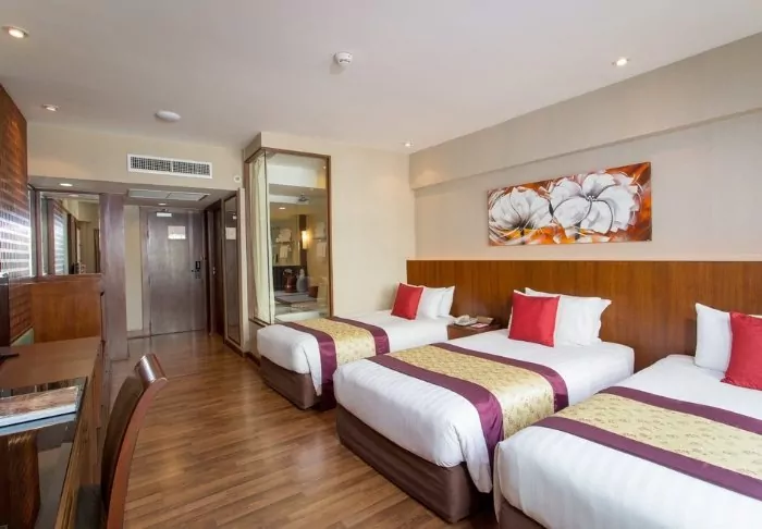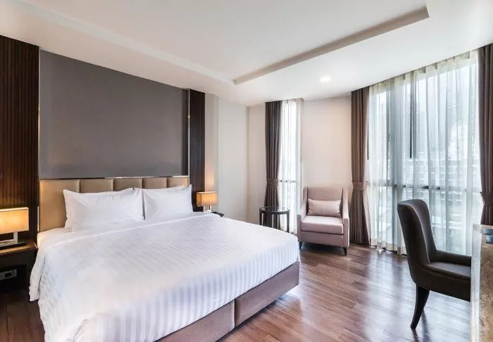 When you’re not out exploring the Thai capital, you can look forward to enjoying the pool area, which is practically a little oasis with swaying palm trees. Here, you can unwind with a refreshing dip or soak up warm sunbeams on a sun lounger. You can also head for a workout session at the hotel’s well-stocked fitness centre, which offers a wide range of cardio and strength training equipment to help you stay in shape. If you seek deeper relaxation, you can also book a massage at the hotel’s spa area or treat your body to a visit to the sauna, steam bath, or jacuzzi.