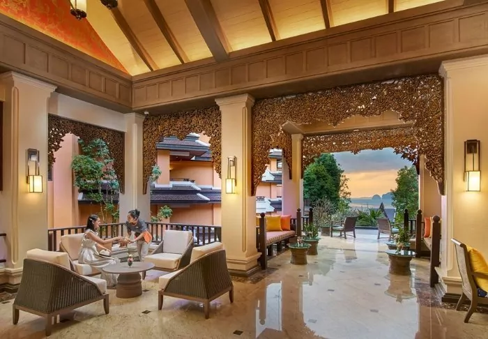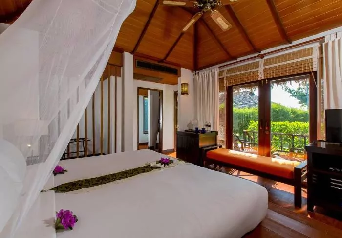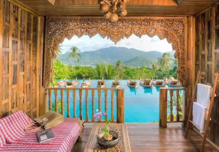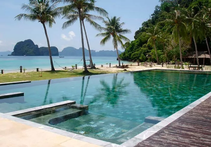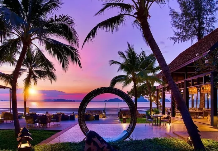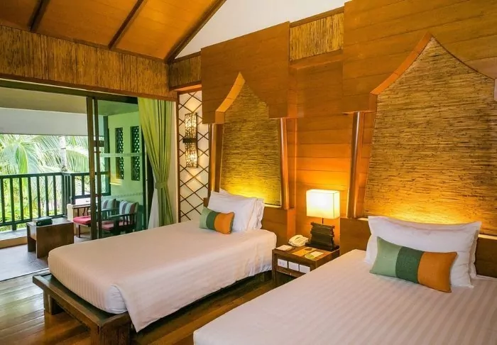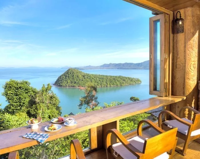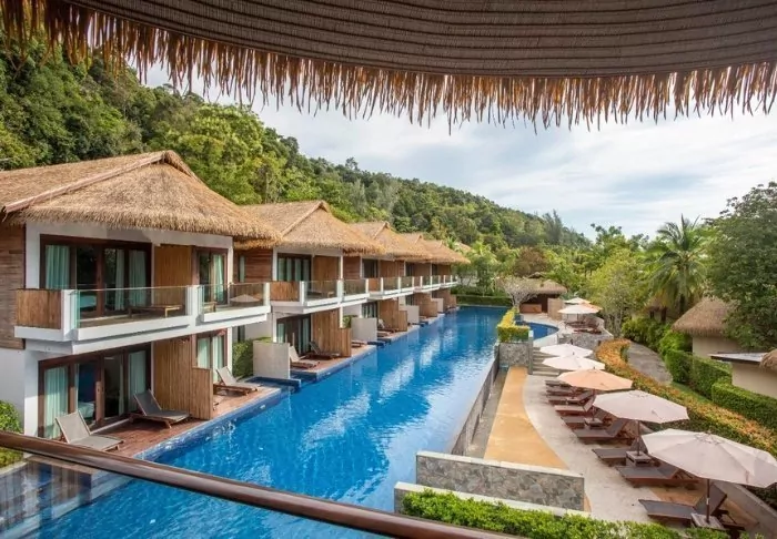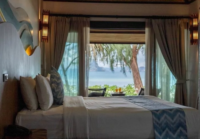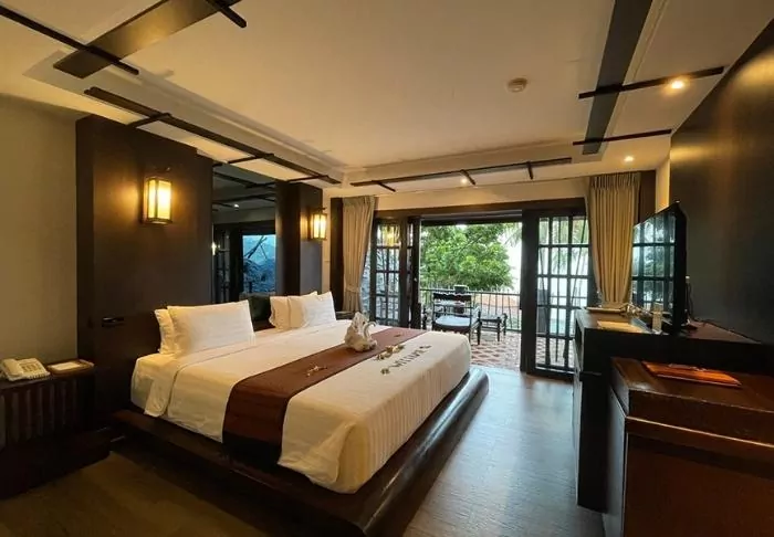 The resort is decorated in beautiful Thai style, and you are greeted by a breathtaking view of the Andaman Sea and the surrounding limestone karsts.