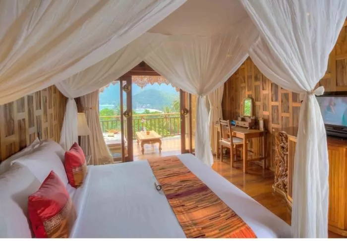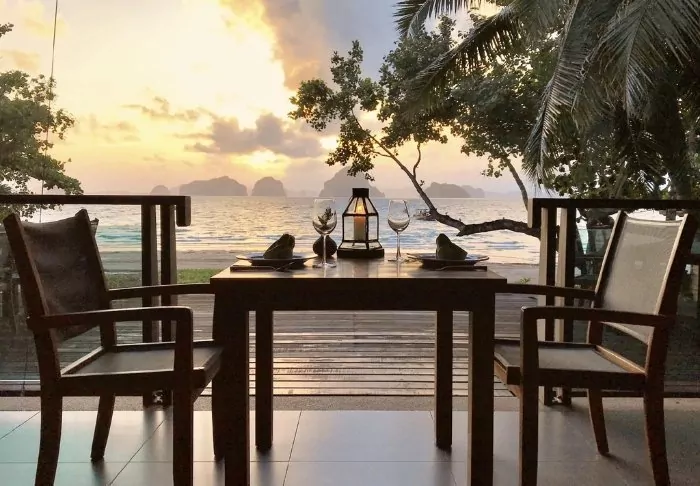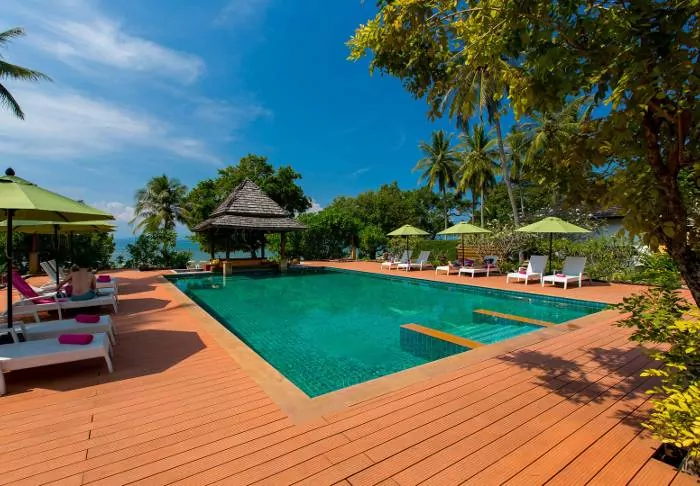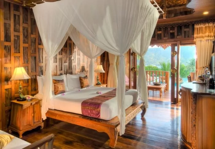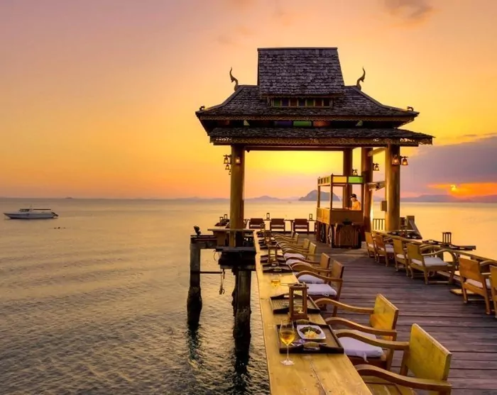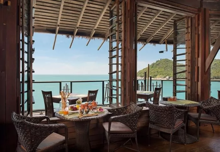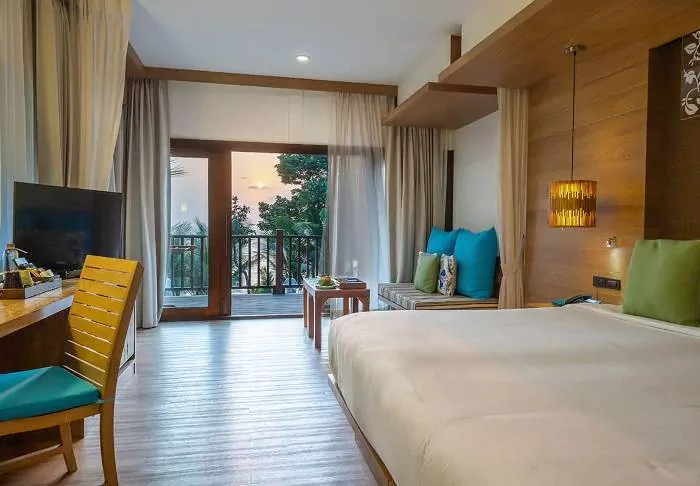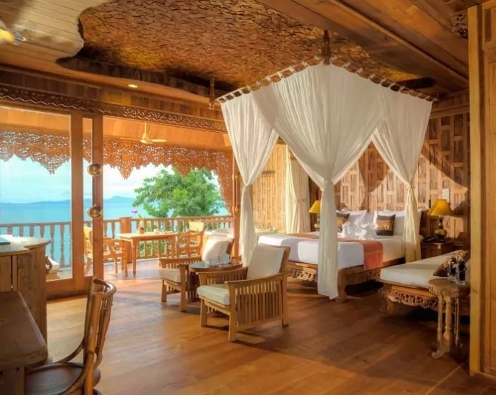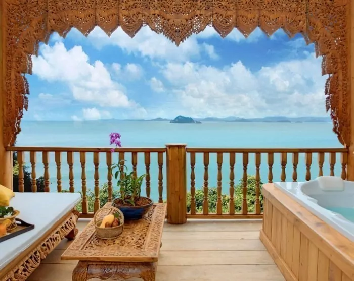 The resort is decorated in beautiful Thai style, and you are greeted by a breathtaking view of the Andaman Sea and the surrounding limestone karsts.