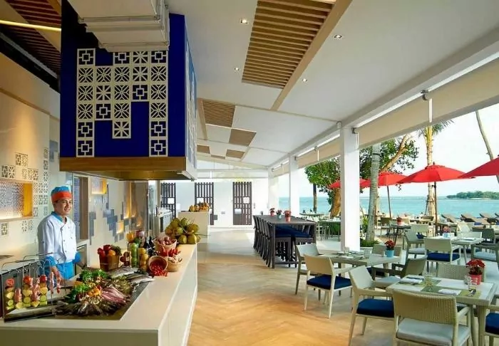 When hunger strikes, you can visit one of the resort’s 3 restaurants, all offering a sea view: Atrium Café, Beach Bar & Restaurant and the Poolside Bar. A range of Asian and international dishes are served here. And be sure to enjoy a cool drink right here on the beach.