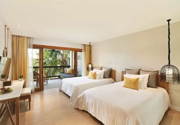 Riva Surya has 68 rooms, each of which is furnished with an exclusive and modern design. The rooms are spacious and comfortable, providing you with a relaxing place to take a break. Each room is equipped with air conditioning, Wi-Fi, a king-size bed, mini bar, flatscreen TV, safe, coffee and tea facilities, as well as an iron and ironing board. The bathroom offers free toiletries, a hair dryer, and bath robes.