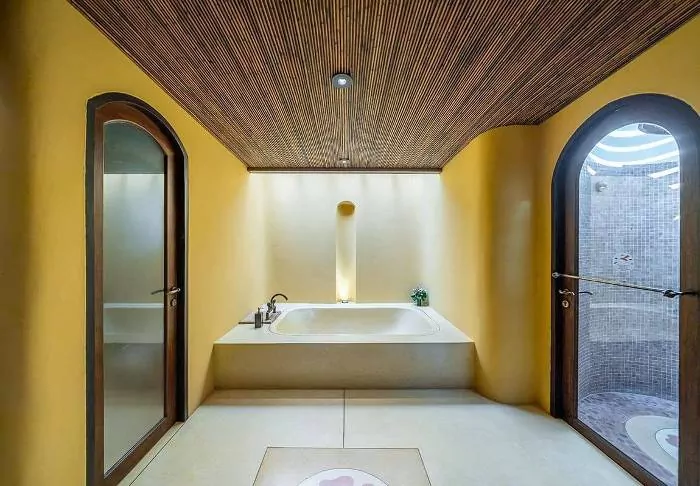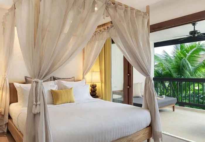 The accommodation options at Santhiya are nothing short of amazing. Each room and each villa has its own unique charm and exquisite details. Many of them have breathtaking views of the bay and the sea, and some even have private pools, creating the perfect setting for a romantic getaway or a relaxing holiday with the family. They are all beautifully decorated with authentic wood-carved details as well as modern comforts such as air conditioning, Wi-Fi, a flat screen TV, a minibar and a safe. There is also a mosquito net over the bed. The lovely bathrooms have complimentary toiletries, a hair dryer, bathrobes and slippers. In the morning, you can start the day with a cup of coffee on your spacious balcony, which has a daybed and a ceiling fan.