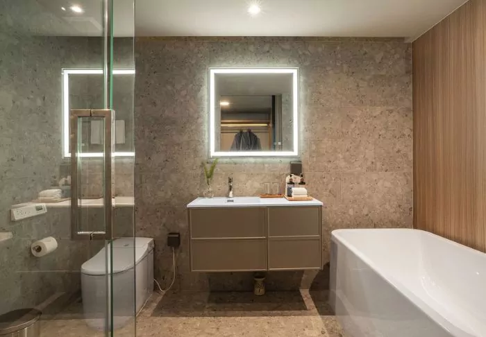 The rooms are modernly appointed with a flat-screen TV, tea and coffee making facilities, a minibar, a safe, air conditioning, a hair dryer, bathrobes and slippers. All rooms have a private balcony.