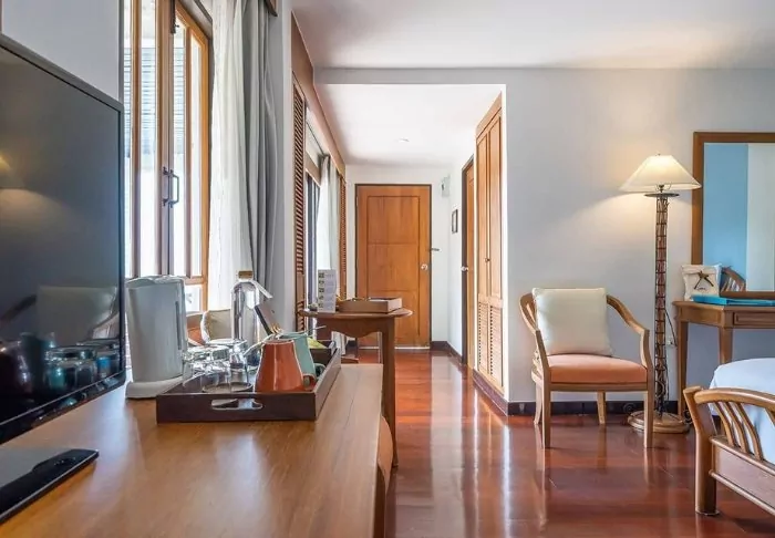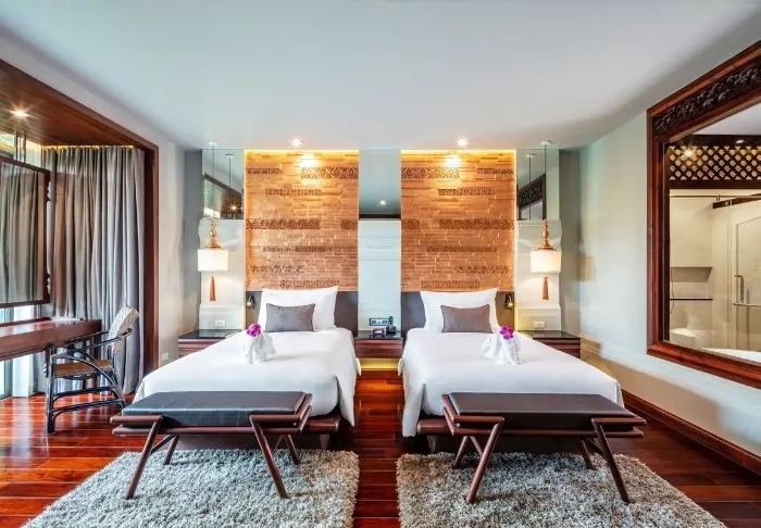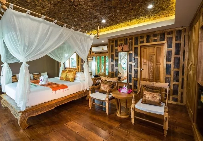 This charming little boutique hotel marries traditional Thai architecture with modern luxury and comfort in the best way possible. You will see the same in the hotel’s elegant rooms, which are furnished with an attention to detail in the classic Thai style. All rooms offer air conditioning, Wi-Fi, TV, coffee, and tea facilities, as well as ensuite bathrooms with rainfall showers and a variety of free toiletries.