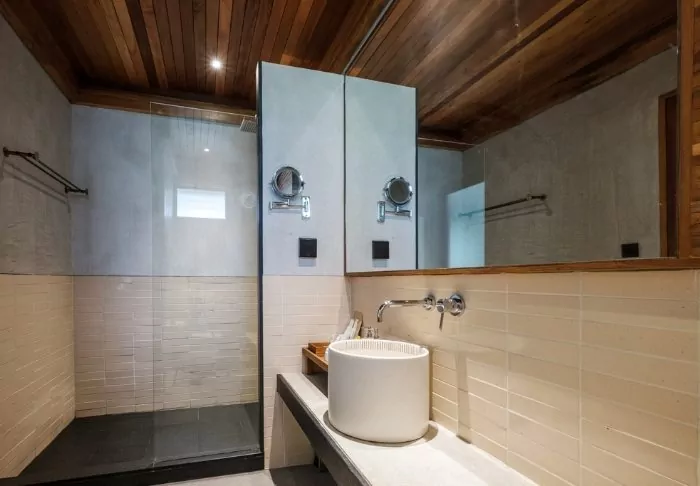 You will stay in one of the resort’s spacious studios of as much as 54 sqm. The open plan solution encourages intimacy and cozy moments. You have at your disposal facilities such as air conditioning, TV, Wi-Fi, desk, coffee and tea making station as well as complimentary fruit on arrival and bottled mineral water throughout your stay. You will also find a good selection in the minibar for the late evening hours which can be enjoyed on your private terrace while you relax in the floating hammock sofa with room for two. The bathroom is divided into two with a separate shower area, where you can look forward to showering in the semi-open shower with complimentary toiletries, making your stay extra comfortable.
