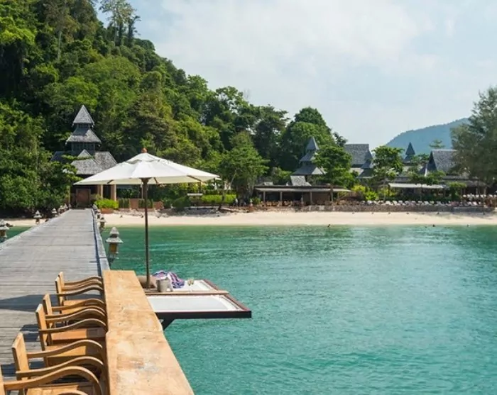 A lush garden and a 300-metre-long private sandy beach provide the setting for 40 charming villas, overlooking the lush gardens or the scenic Andaman Sea. Some even have their own pool. Each villa offers Wi-Fi, air conditioning, ceiling fan, safe, mini fridge, TV, umbrellas, tea and coffee making facilities as well as complimentary bottled mineral water. The bathrooms have an outdoor shower, toiletries and a hair dryer. The villas also have a private veranda with a table and chairs, so you can sit back and relax with a good book or simply enjoy the peace and quiet and the green surroundings.