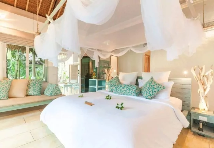 Tamarind Village has 46 rooms and suites, each with a gorgeous interior of hand-made furniture and colourful textiles. All rooms provide the modern facilities you need for a comfortable stay, including air conditioning, a mini-bar, Wi-Fi, a safe, coffee and tea facilities, as well as a lovely view of the beautiful, lush gardens with tropical vegetation. The bathrooms are elegant and offer hair dryers, bath robes, slippers, and various toiletries.