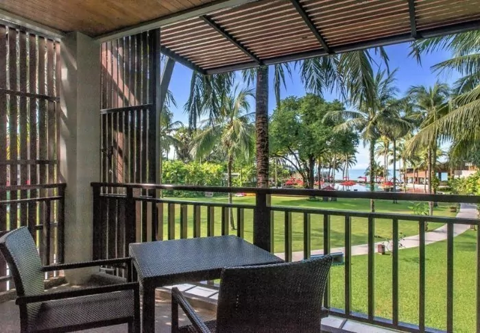 The resort has 275 rooms built in modern Thai style and decorated in light, subdued colours. All rooms have a balcony and also offer Wi-Fi, a TV, air conditioning, a minibar, a desk and a small seating area. The bathroom has a rain shower, hair dryer and bathrobes and slippers.