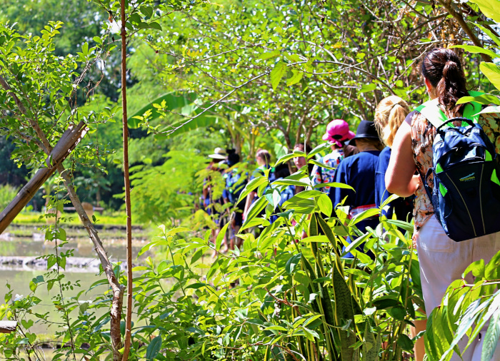 The family welcomes you, and you are given a tour of the house and the family’s plantation. Many different types of fruit grow here, including bananas, mangoes and coconuts, while the garden is filled with herbs and spices for cooking.