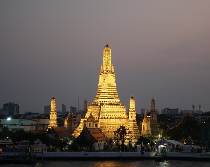 The evening rounds off at the relaxing rooftop bar Eagle Nest, located on the Chao Phraya River, overlooking the illuminated Wat Arun temple. You’ll be hard-pressed to find a better view than this!