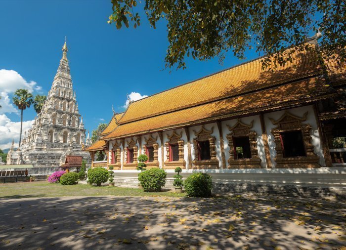 After exploring the majestic ancient city, you will continue to Wat Chai Mongkhon, situated on the Ping River. Here, you will go on a pleasant boat ride, taking you past old teak houses and beautiful scenery.