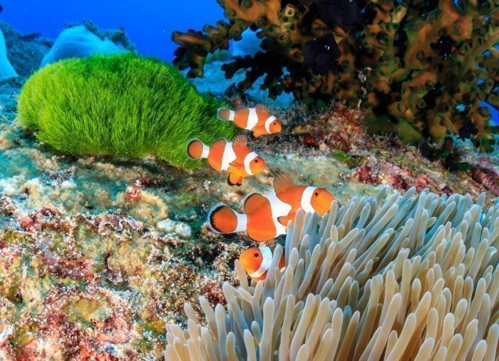 You go back on board the boat, which transports you to the first snorkelling stop of the day. You put on a mask, snorkel and flippers and jump into the water, where you will discover the stunning underwater world with its beautiful corals and striped fish – you might even be lucky enough to spot Nemo!