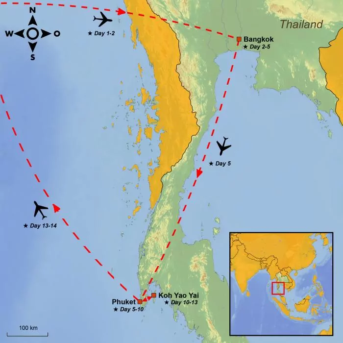 This tour offers a wide variety of experiences in Bangkok and on the islands of Phuket and Koh Yao Yai.