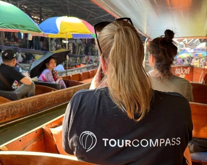 You’ll arrive in Thailand’s vibrant capital, Bangkok. After passing through immigration and collecting your luggage, you’ll meet your guide in the arrivals hall at Door B, Gate 6. Your guide will be wearing the TourCompass uniform and carrying a TourCompass sign, making it easy for you to spot them. From here, you’ll be transferred to your hotel in the heart of Bangkok – and even on the way, you’ll get your first glimpse of the city’s grandeur and its bustling, energetic atmosphere.