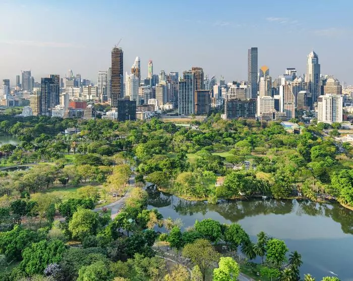 After roaming Bangkok amidst its tropical heat and noisy traffic, you might find yourself yearning for greener, quieter spots. Consider visiting the Lumpini or Benjakiti Parks. Alternatively, cross to the western side of the river to discover a different world without skyscrapers and honking tuk-tuks. Here, you can encounter traditional Bangkok and a maze of canals, where houses perch on stilts and postmen deliver by boat.