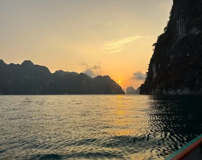 Late in the afternoon, you can join a fantastic boat safari. Here, you have the opportunity to spot some of the area’s birds and wild mammals, such as hornbills, elephants, gaurs, and sambar deer. On the way back to the hotel, the sun will begin to set behind the towering limestone cliffs – a truly magical sight!