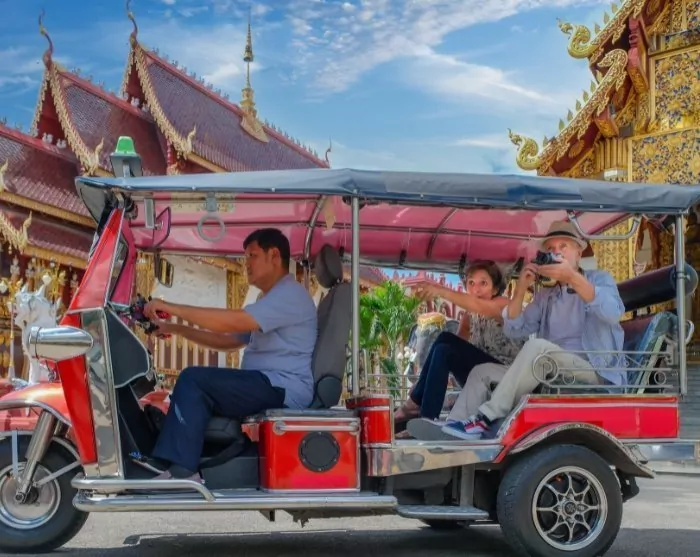 When getting around Bangkok, you don’t need to worry about the infamous traffic as the city offers a good range of transportation options. Many use tuk-tuks or Grab, but the river taxis are also a hit and make up a significant part of the public transport, stopping at many of the city’s major attractions. Additionally, there is the Sky Train, which winds between the city’s skyscrapers, providing a good, fast, and affordable way to get around.