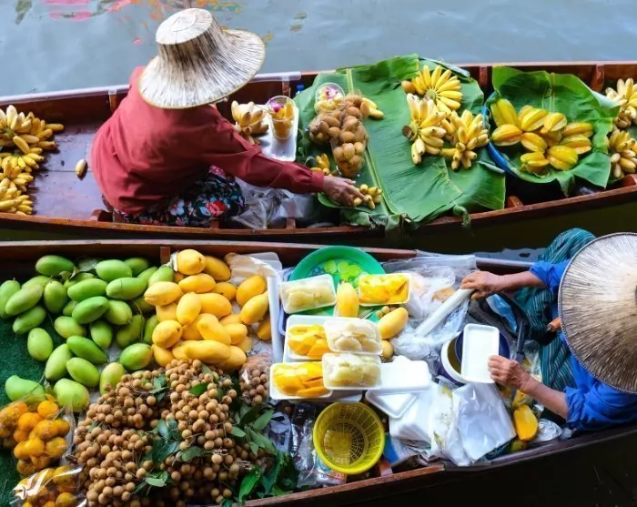 After wandering through Bangkok in the tropical heat and bustling traffic, there will certainly be moments when you dream of greener and quieter places. Here, you might visit the Lumpini or Benjakiti parks. You can also venture to the western side of the river, where you will experience a completely different world without skyscrapers and honking tuk-tuks. Here, you’ll encounter traditional Bangkok and a labyrinth of canals with stilted houses and mail carriers navigating by boat.