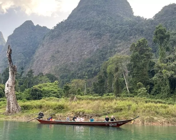 Next, you’ll be driven to the Ratchabrapa pier near the impressive dam. Here, you will board a long-tail boat and sail onto Cheow Lan Lake, where the majestic landscape with iconic limestone cliffs awaits.