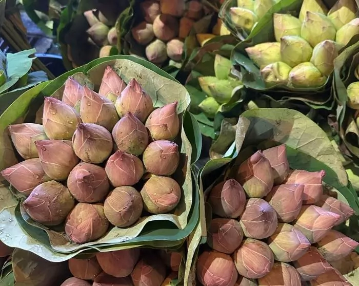 The tour continues to Thailand’s largest flower market, Pak Klong Talat, open only in the evening. Here, you can stroll past numerous flower stalls and have the chance to fold your own lotus flower, which holds significant importance, especially for Buddhists.