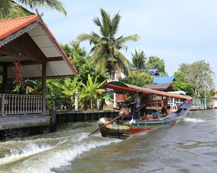 After wandering through the tropical heat and bustling traffic of Bangkok, there will surely be moments when you dream of greener and more tranquil places. This is your cue to visit the Lumpini or Benjakiti parks. Alternatively, cross over to the western side of the river, where you’ll discover a completely different world without skyscrapers and honking tuk-tuks. Here, you’ll find traditional Bangkok, a maze of canals where houses stand on stilts and postmen come by boat.