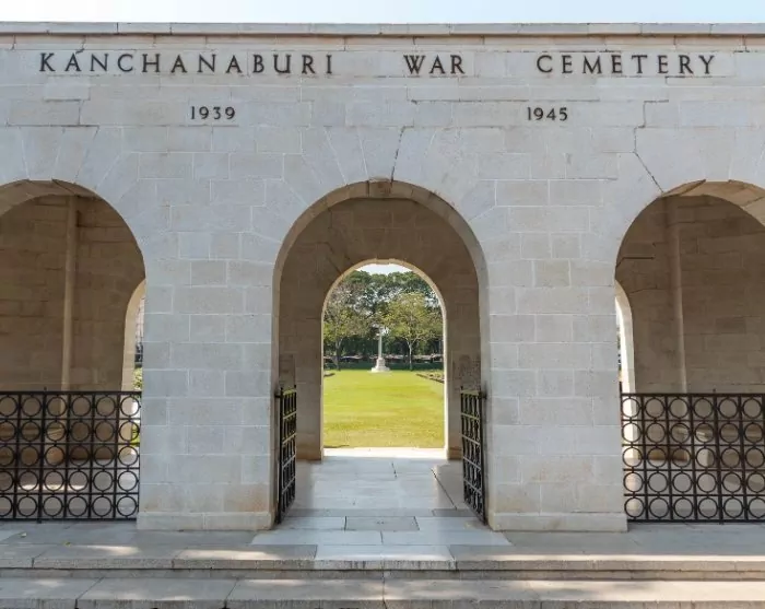 Next, you’ll visit the war cemetery, a memorial for around 6,000 Allied prisoners of war who perished during the construction of the Death Railway and were relocated here after the war for their final rest.