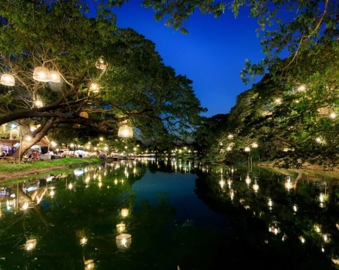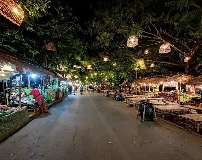Next, you’ll stop at a local night market, where you’ll have time to wander among the many stalls. Discover local delicacies such as braised pork leg (khao kha mu), coconut pudding, and sticky rice with egg (bua loi khai waan).