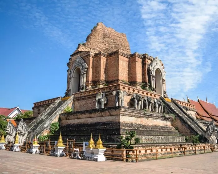 You’ll be driven to our partner’s office, where you will be kitted out with a bicycle and bicycle helmet. After a quick briefing, it’s time to hit the pedals and experience the charm of the city. The route is flat and easy, making it suitable for most people. You’ll cycle through the small, quiet streets of Chiang Mai to the fine temple Wat Inthakhin Sadue Mueang, known for its 700-year-old white Buddha statue. The bike ride continues past the Three Kings monument to Tha Phae Gate, the city gate where traders brought their wares into the city. Here, the guide will tell you all about Chiang Mai as a former trade centre. You’ll continue to the nearby Somphet Market, where you have time to walk around and soak in the local atmosphere. You’ll also have the opportunity to taste the colourful fruits and sweets. Wat Chiang Man, Chiang Mai’s oldest temple, then awaits. It is here that the 1,800-year-old Crystal Buddha and the 2,500-year-old Marble Buddha are kept. Finally, you’ll visit the city’s largest and most iconic monument, Wat Chedi Luang, once home to the Emerald Buddha, which is now housed in Wat Phra Kaew temple in Bangkok.