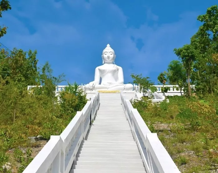 From Yun Lai Hill, you continue to Wat Phra Mae Yen, also known as the Big Buddha, an iconic landmark in Pai. The impressive Buddha statue towers majestically over the Pai Valley and is visible from afar. To reach the statue you will have to climb a stairway with 350 steps, but you will be rewarded with wonderful views of the valley and the surrounding mountains.