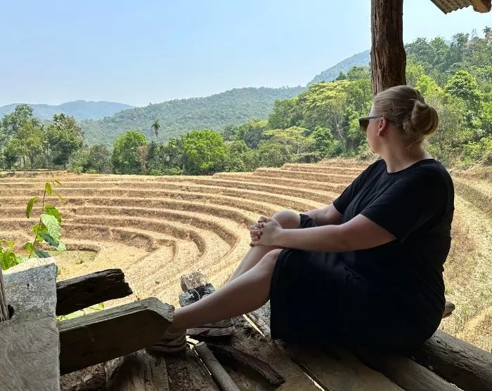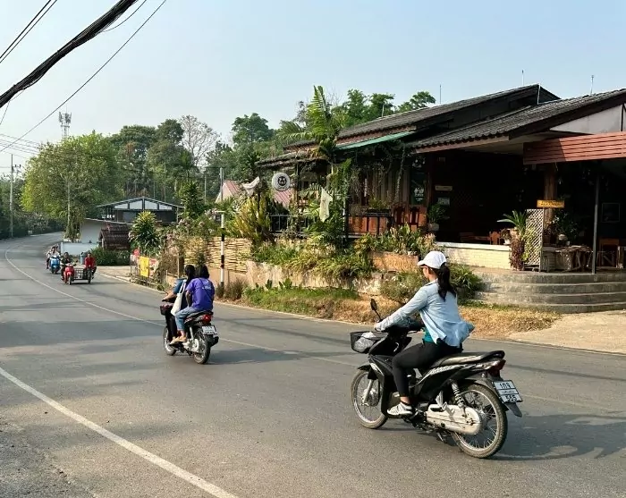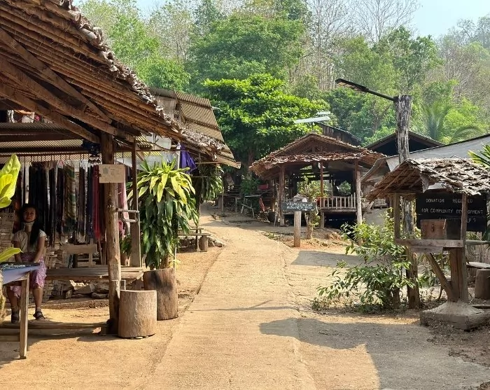 You drive along winding roads to the small village of Ban Huay Hom, which is surrounded by mountains and lush nature. The village is known for its authentic charm, and is home to the Karen people, who live in traditional wooden houses.
