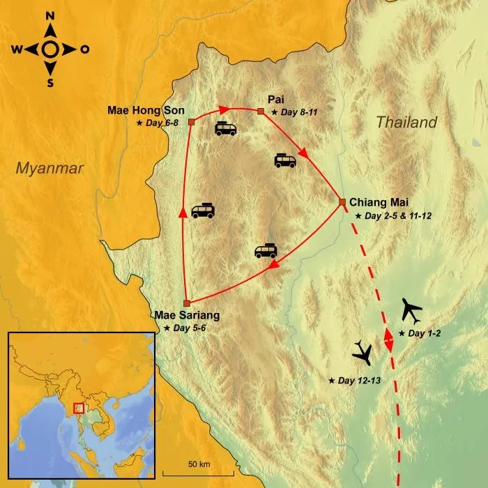The journey ends back in Chiang Mai, where you can digest everything you have seen and done along the way.
