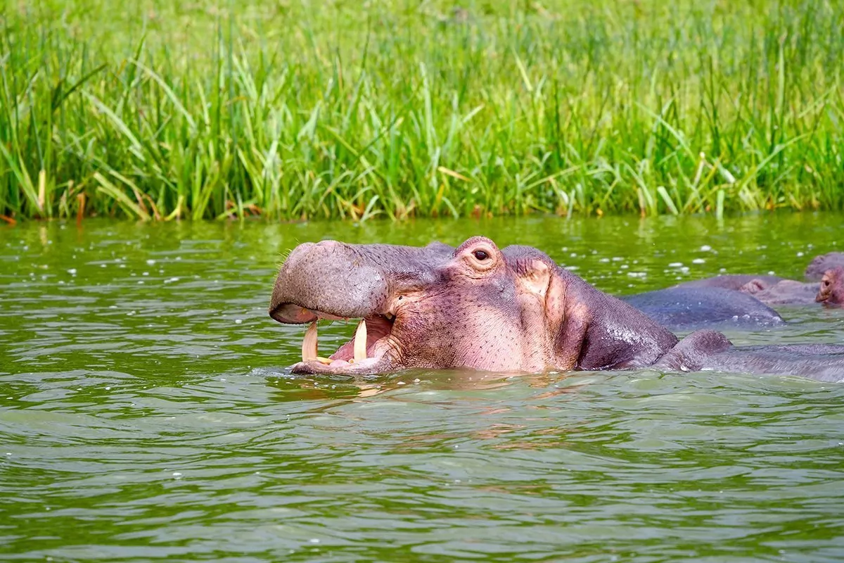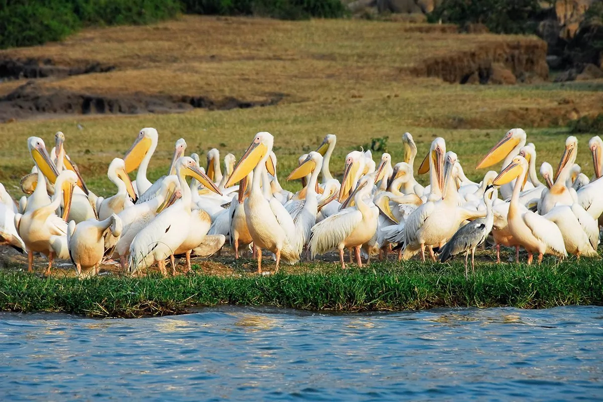 In the afternoon, there is a boat trip on the Kazinga Channel, which connects the two lakes, Lake George and Lake Edward. The 42-kilometre long channel attracts a great many animals and offers every opportunity for you to see crocodiles, hippos and other animals cooling off in the refreshing water. Along the banks of the channel, you may be lucky enough to see elephants and buffaloes, and perhaps even European migratory birds, which gather in large flocks.