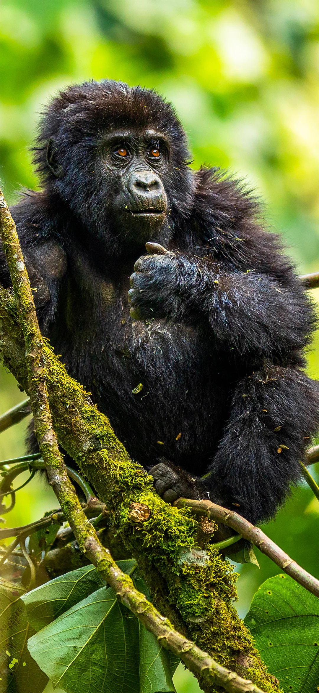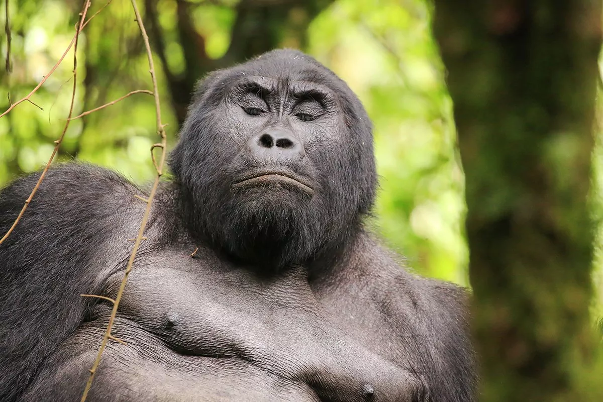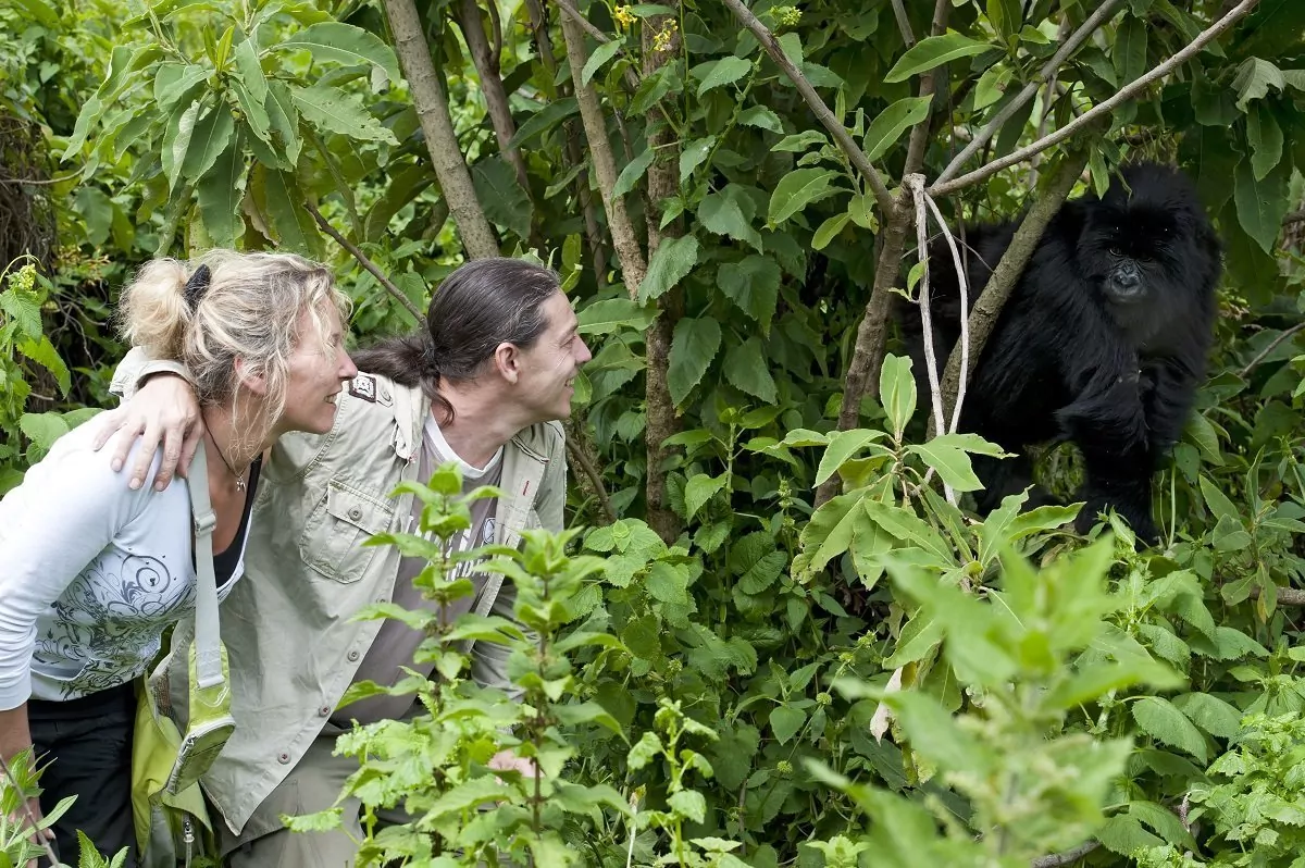 From the rangers’ headquarters, you set out with guides through thick vines of creepers and undergrowth to find the gorillas. The heavily wooded landscape is incredibly dense but traversed by numerous animal trails that facilitate your passage. Remember to enjoy the hike through the forest and look out for other animals and birds.