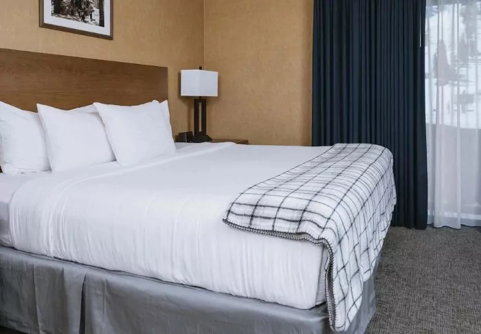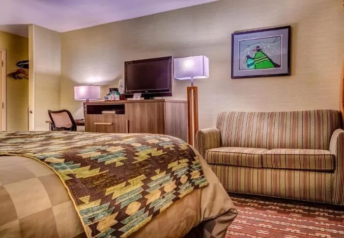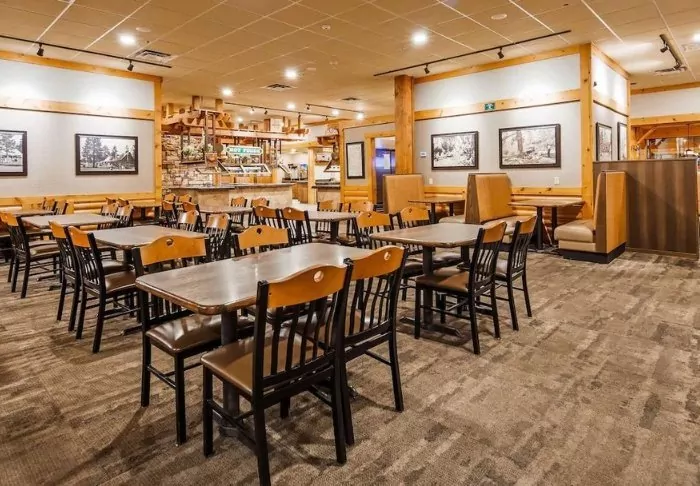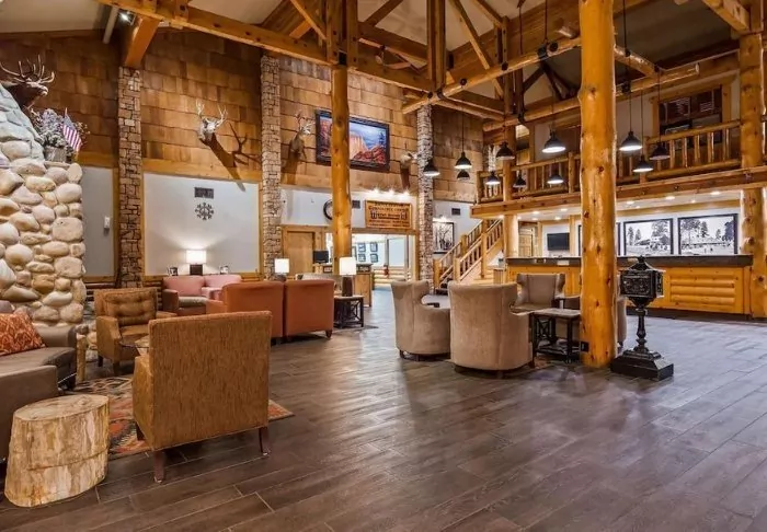 The hotel is built in typical lodge style and offers 132 rooms, renovated in 2024. The rooms are furnished in a modern style in warm and earthy shades, adding a cozy atmosphere to your stay. In addition to a desk, TV, mini-fridge and coffee machine, there is an en-suite bathroom with a hairdryer and a small selection of free toiletries. The rooms also have air conditioning and free Wi-Fi.