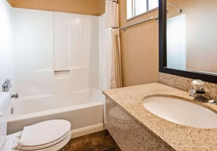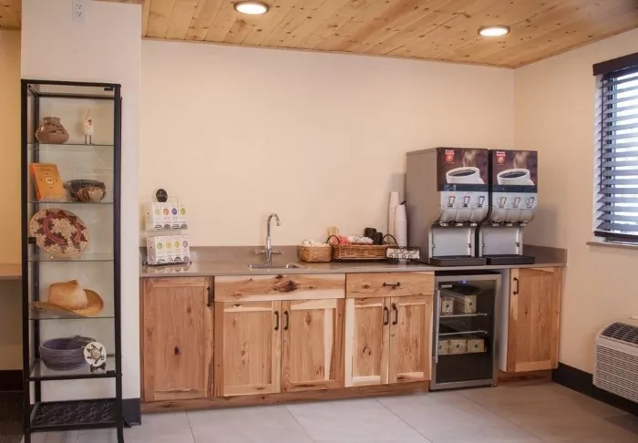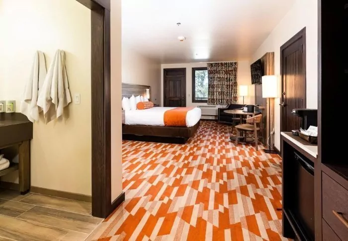 Red Feather Lodge consists of both a hotel section and an older motel section. You will only be offered a room in the section of the hotel that was renovated in 2019. This is evident in the attractive rooms, which offer adjustable air conditioning/heating, a coffee machine, a mini fridge, a microwave and free Wi-Fi. All rooms have their own bathroom with a hair dryer.