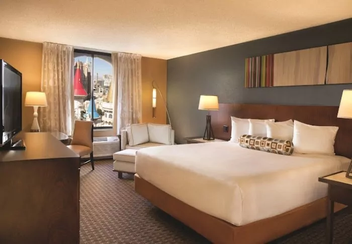 The hotel is large, with some 3,981 spacious rooms decorated in warm tones, with carpeted floors and wooden furniture. All rooms offer a TV, a safe, a mini fridge, air conditioning and an en suite bathroom.