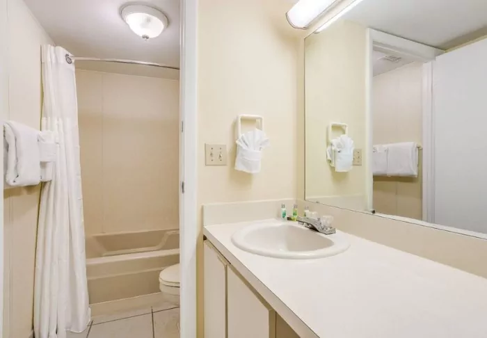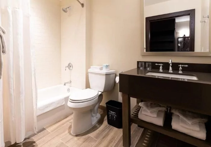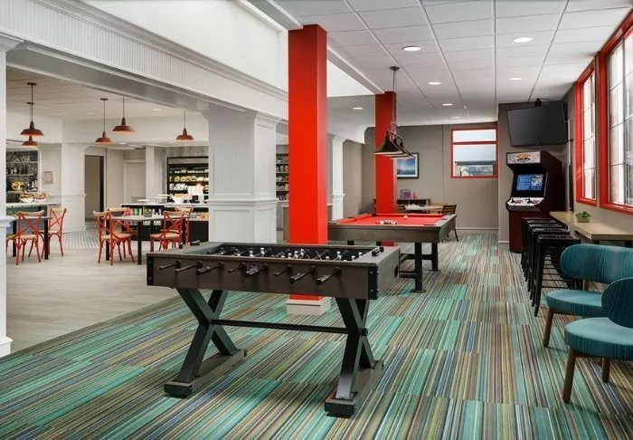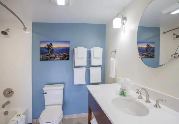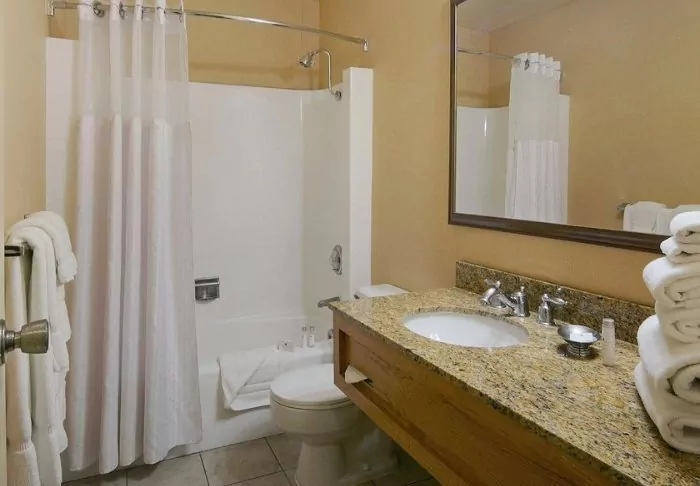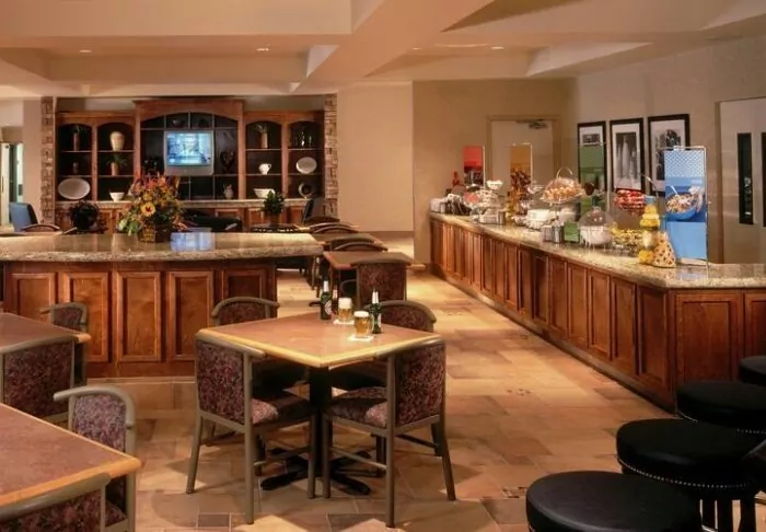 There are 2 restaurants in the hotel’s premises that offer breakfast and dinner options. Here, you can get classic American dishes, as well as pizza for dinner.