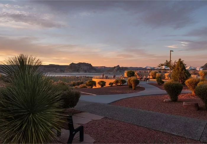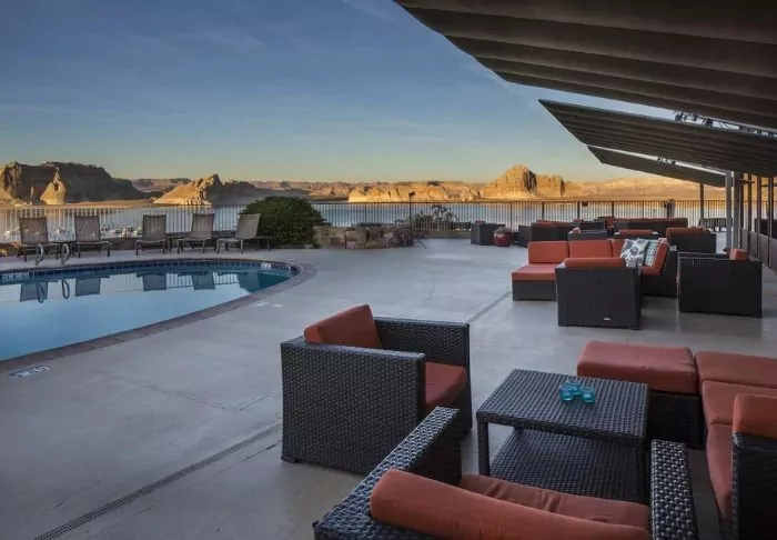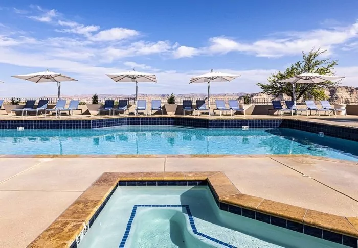 By the outdoor swimming pool and jacuzzi, you can also enjoy a relaxing moment with a view of Lake Powell, where you can follow the boats on the lake. If you wish to explore Lake Powell from the water, the hotel can help arrange all kinds of boat trips (must be booked directly through the hotel).