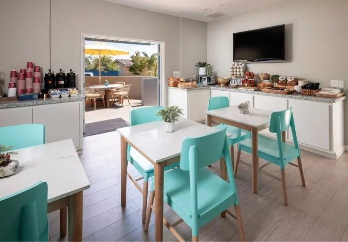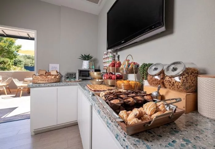 The hotel serves a continental breakfast which is sufficient for most people. If you’d like a more filling breakfast, you should visit the nearby popular breakfast chain, IHOP, known for its pancake towers and omelettes.