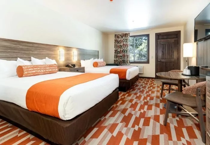At Red Feather Lodge, you’re just a 1.7-kilometre drive from the rim of the Grand Canyon. Tusayan is a small district that offers hotels, restaurants, a shopping mall and a gas station. Right across from the hotel, you’ll find, among other things, the popular, local steakhouse, but there are also several well-known fast food chains nearby.