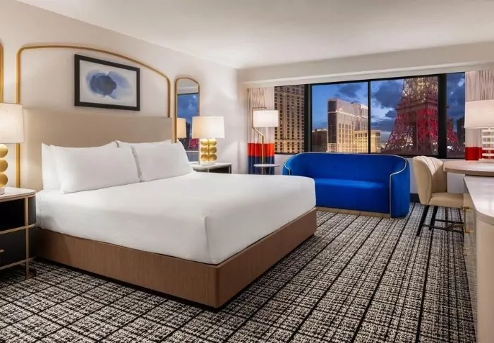 Centrally located on Las Vegas’ famous street, The Strip, you’ll find the iconic Paris Hotel. As the name suggests, the hotel is inspired by Paris, the city of love, and encapsulates French elegance with the lively atmosphere of Las Vegas.