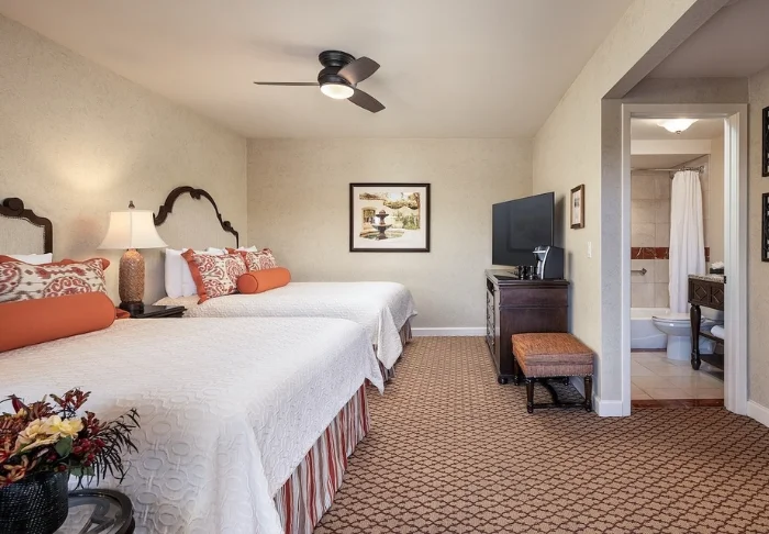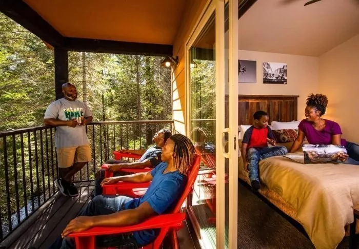 Tenaya Lodge has 302 rooms, decorated in warm shades and with the use of natural materials, creating a cosy, homely atmosphere. Each room offers modern conveniences such as a desk, Wi-Fi, a mini fridge, a coffee maker, a TV, a safe, an iron and ironing board, and air conditioning.