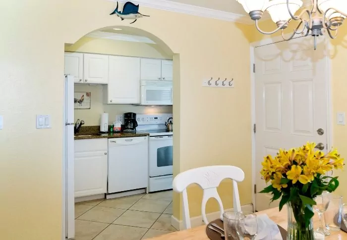 At Barefoot Beach Resort, you will stay in a ‘condo’ that can best be compared to a holiday apartment. The spacious flats are designed in a classic Caribbean style with pastel colours and decorative details. All have useful amenities such as a fully equipped kitchen with fridge-freezer, cooker, dishwasher and coffee-maker. A TV and free Wi-Fi are also provided.