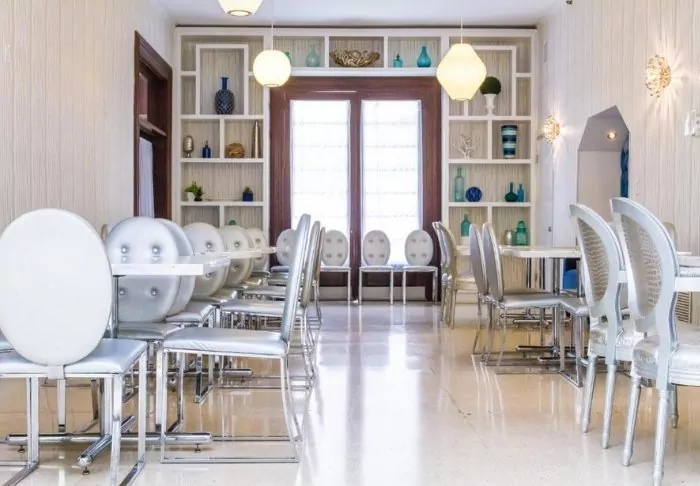 The hotel is built using the same style as one of the city’s characteristic houses, a Spanish style with a bright façade and ivy, which also adorns the cosy covered balcony. There is also a fitness centre, outdoor spa bath, as well as a pool in the garden that serves as a lovely place to swim a few laps before having a snack or some coffee, which can be purchased on-site.