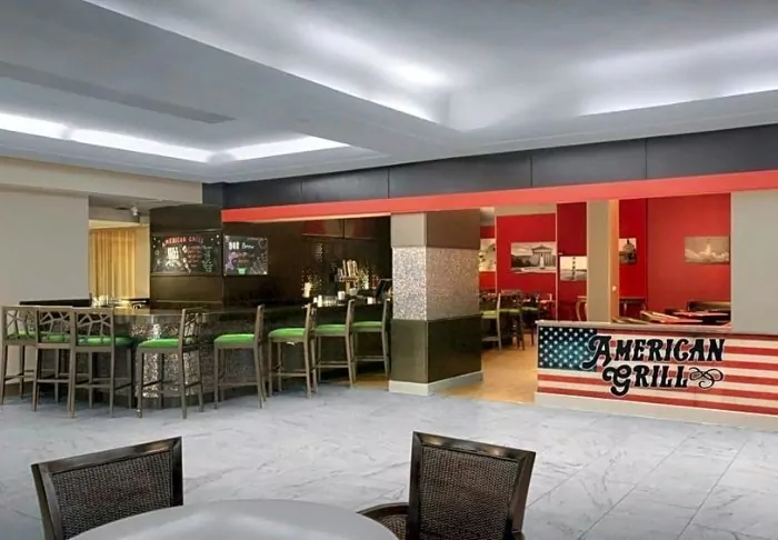 At the hotel’s own restaurant, The Garden Grille & Bar, you can buy dinner, where typical American favourites are on the menu. There is also a cosy bar where you can enjoy a delicious drink or two while you digest the day’s impressions.